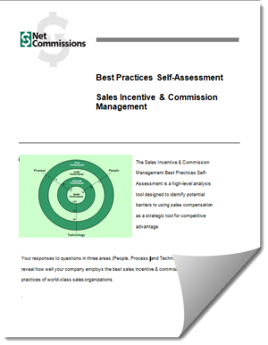 The Sales Commissions Management Systems Best Practices Self-Assessment is a high-level analysis tool designed to identify potential barriers to using sales commissions as a strategic tool for competitive advantage. Your responses to questions in three areas (People, Process, and Technology) can help reveal how well your company employs the best sales commissions practices of world-class sales organizations